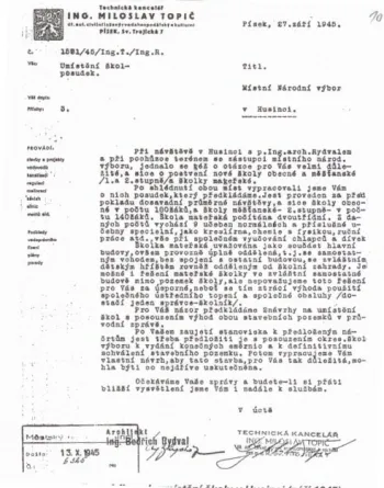 V roce 1929 byla v budově otevřena měšťanská škola, jejímž ředitelem se stal Josef Slípka. Protože školní místnosti nestačily, byl zrušen učitelský byt a výuka probíhala i v jiných prostorách obce — například v šatně kina nebo ve vile Eliška. Nedostatek učeben přetrvával po celá 30. léta, během války i po jejím skončení.